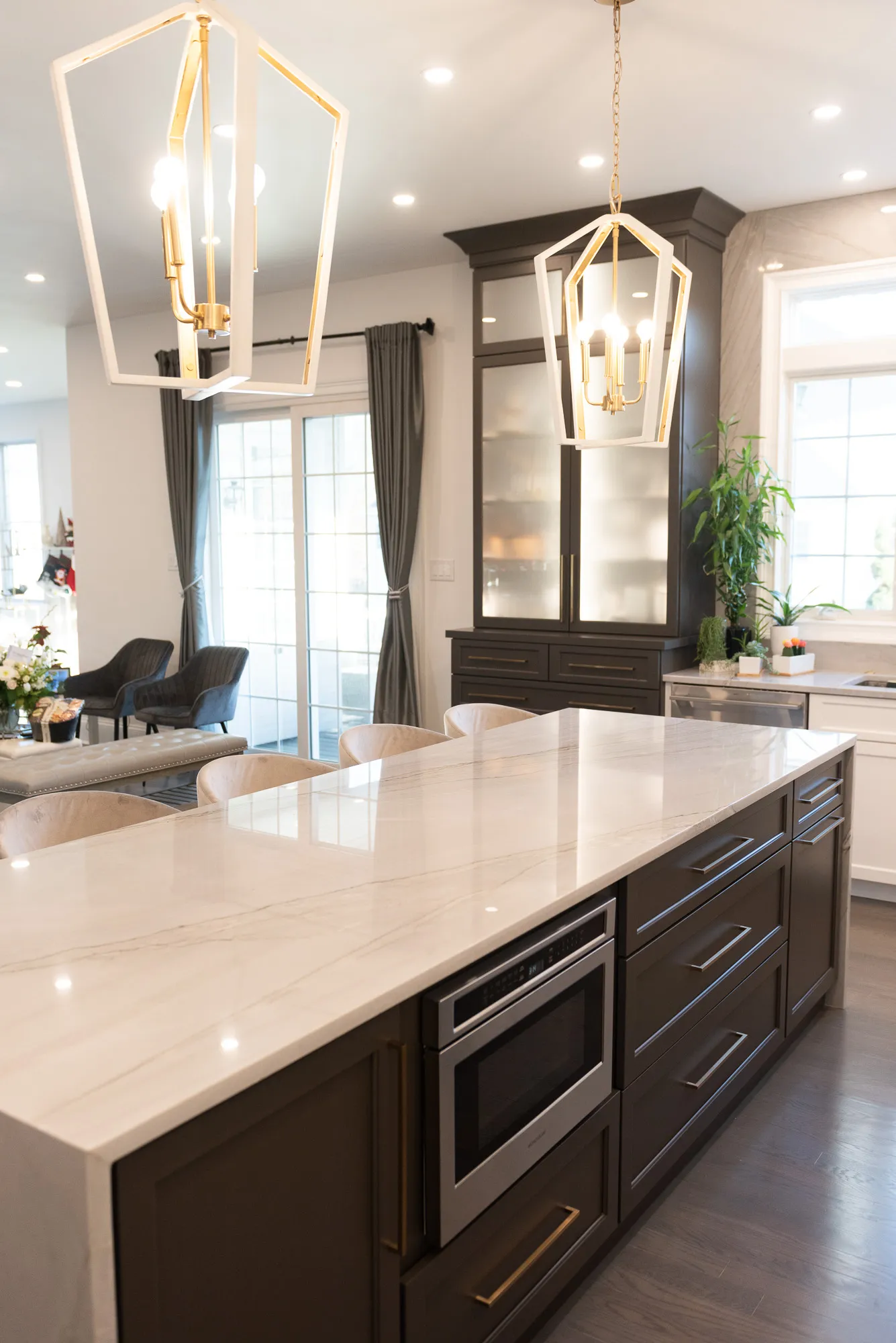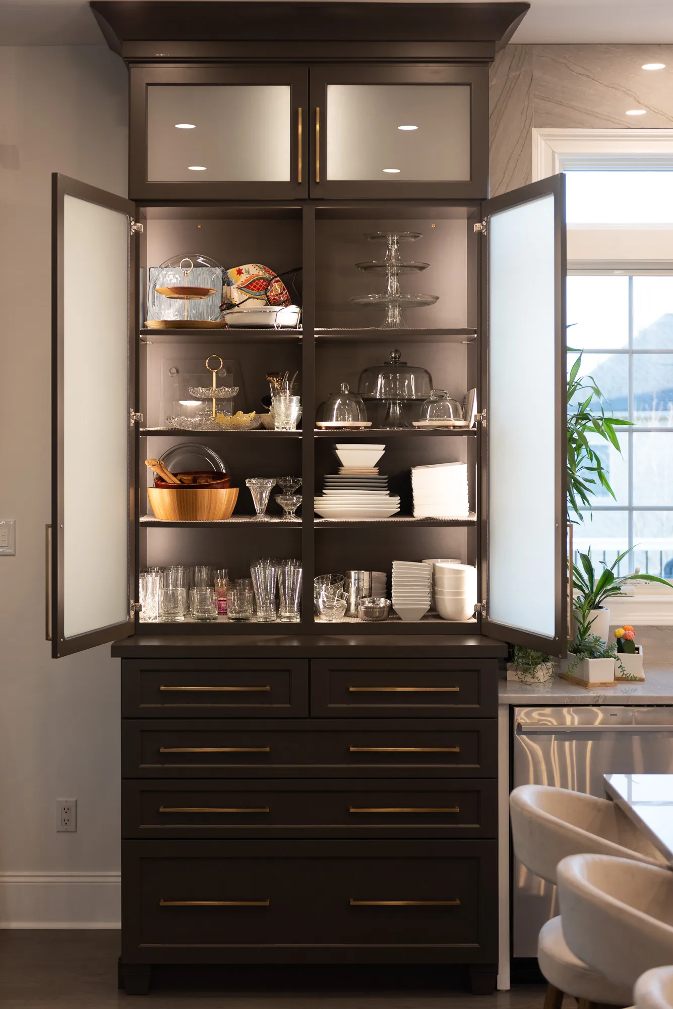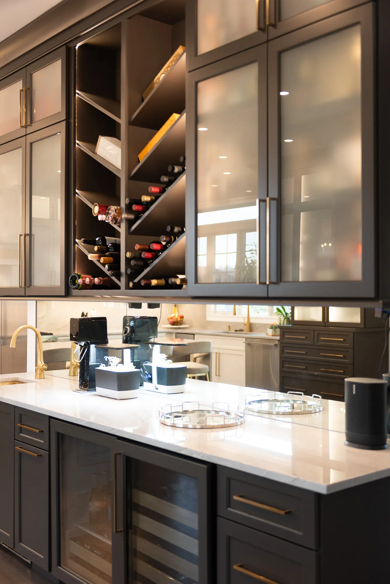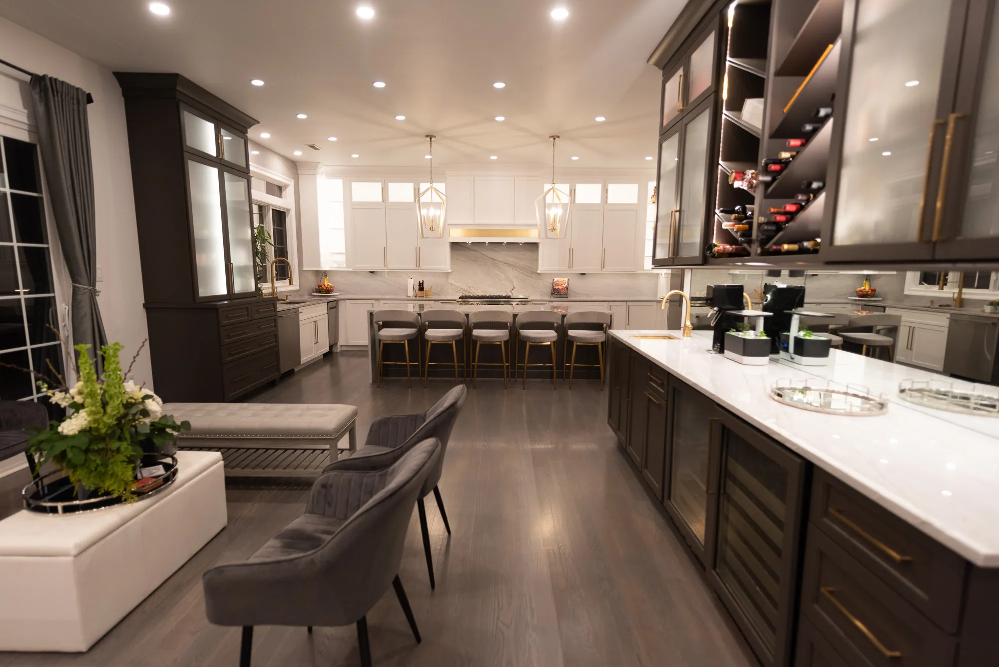 Modernizing this kitchen created a more refined cabinet environment and storage possibilities while also embodying a sleek, sophisticated look. Intentional lighting invokes mood while also filling the workspace with generous, focused light where it’s needed.